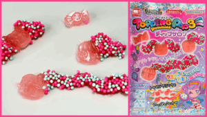 グミは、ピンク(イチゴ味)、あお(グレープ味)、きいろ(パイン味)の3色で、色を混ぜて新しい色を作るもよし、マーブル模様で作るもよし、楽しみ方はいろいろ。